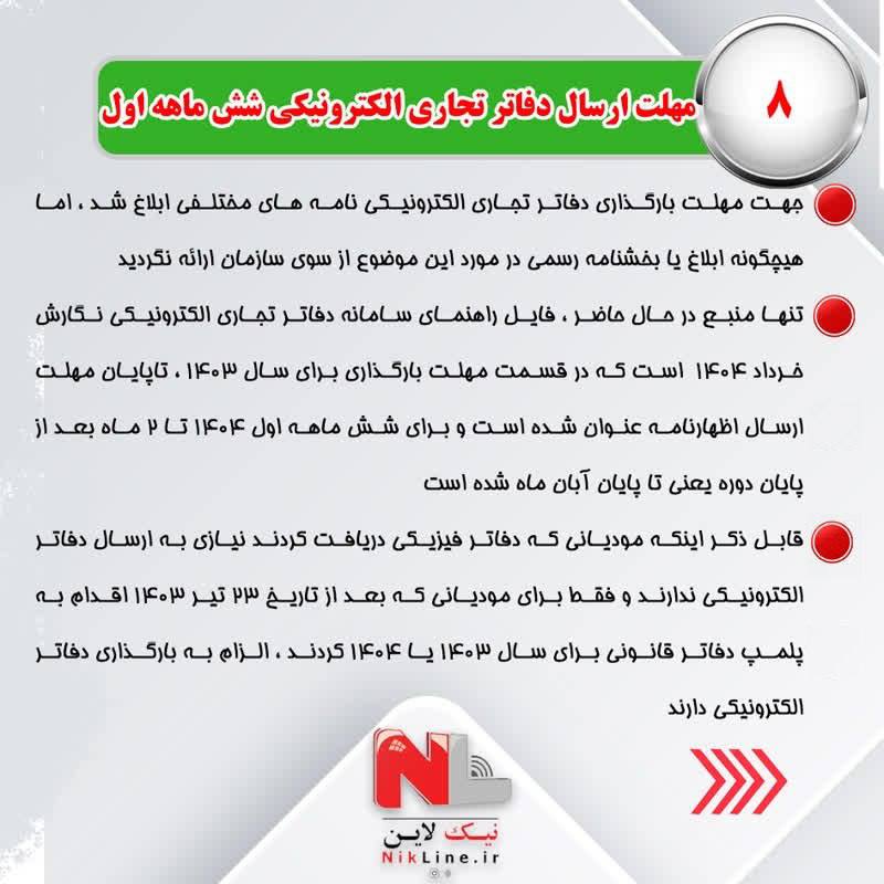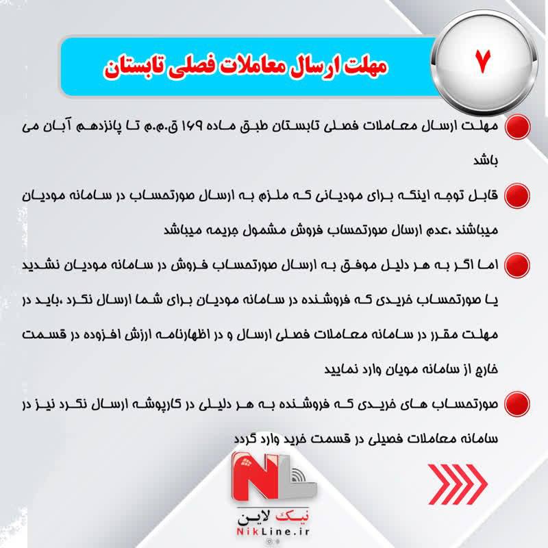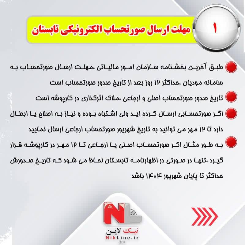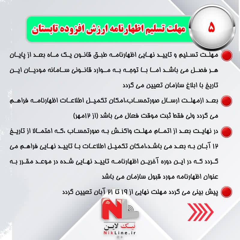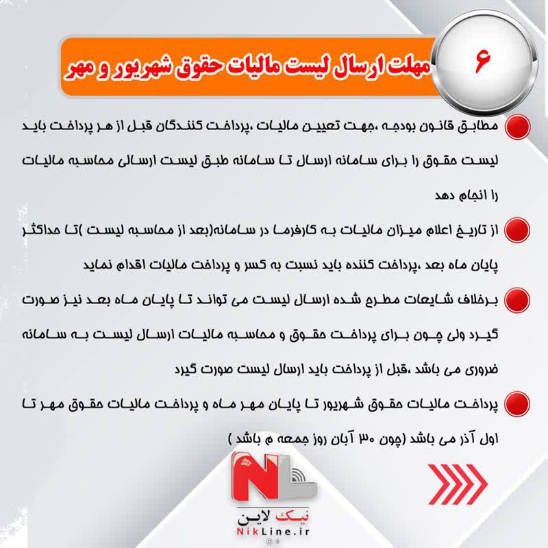 مهلت قانونی تکالیف مالیاتی - ارزش افزوده - لیست بیمه - مالیات حقوق - جدول پرداخت - صورتحساب الکترونیکی