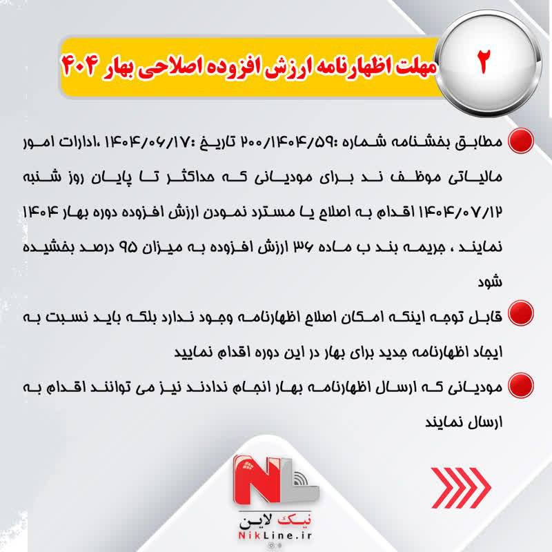 مهلت های قانونی تکالیف مالیاتی مهر و آبان 1404