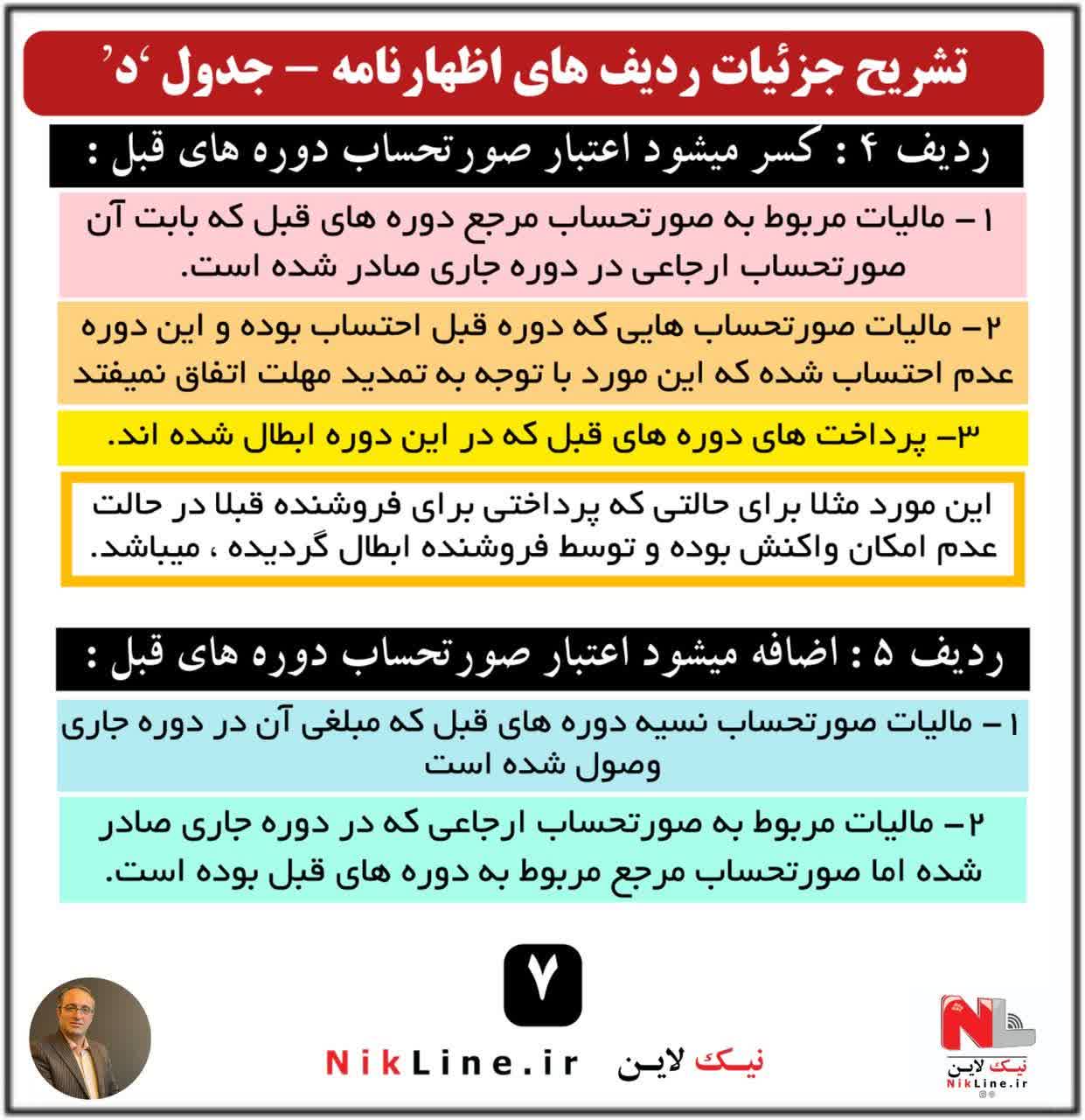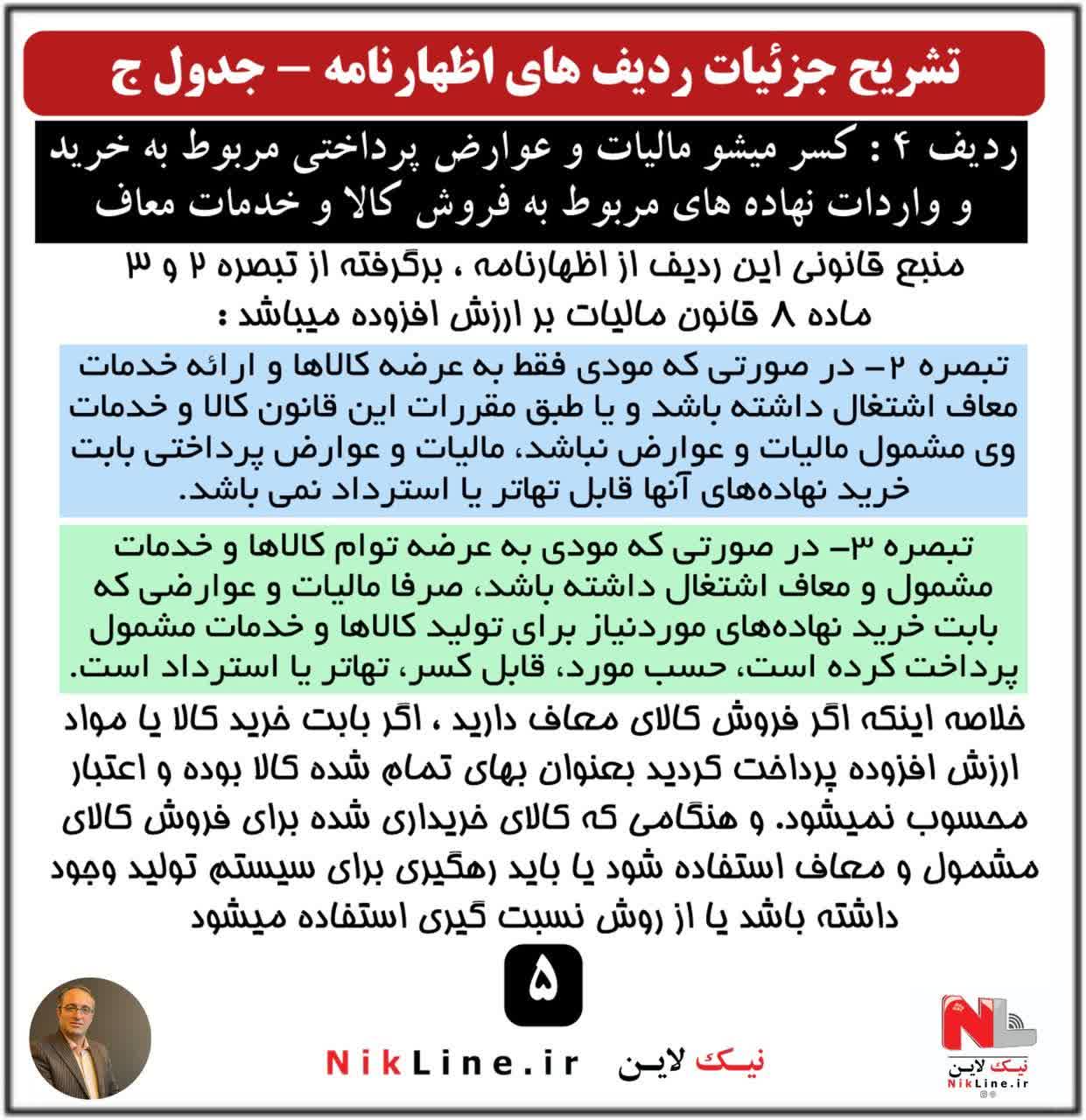 تشریح ردیف های اظهارنامه ارزش افزوده