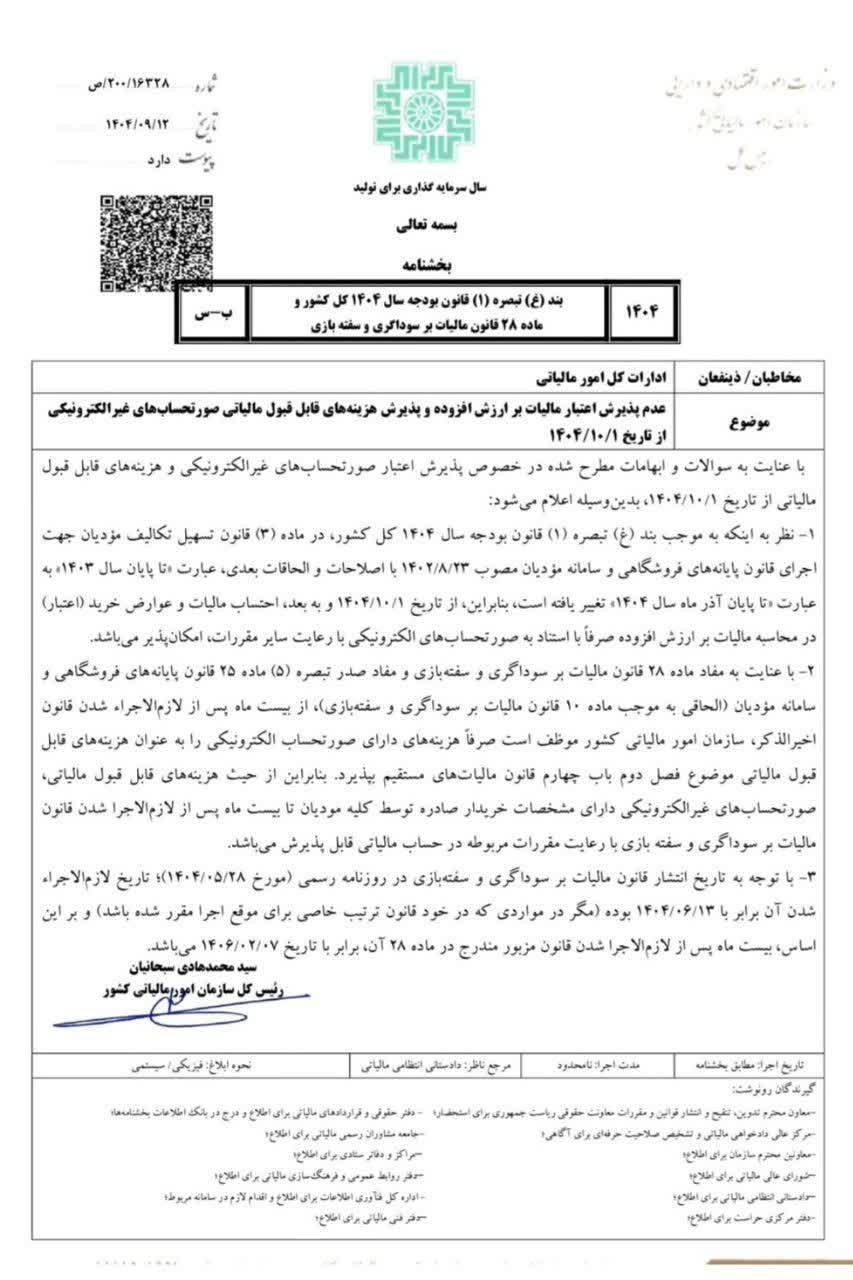 ✍️ بخشنامه مهم سازمان امور مالیاتی